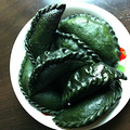 又到吃清明果的季节,我其实不那么有兴趣,但家人好像都喜欢,还做成了饺子的模样,看在还漂亮的份上,就咬上一口吧,还是黑芝麻馅的呢,不错。