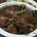 昨天中午自己炖的红烧猪脚哈。。。味道很好的,新鲜猪脚和腌过的猪脚一起炖。那个香啊,一连吃了好多,连晚饭都不想吃了。。