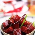 【原 料】:腐乳、五花肉、葱、姜、蒜、小红椒、花椒、大料、小茴香、草果。 【做 法】: 1、五花肉切块; 2、葱切段、蒜切大片、姜切片; 3、锅内做水放入切好块的五花肉; 4、腐乳捣碎; 5、锅内焯水的五花肉煮透吐出血沫; 6、捞出肉放在盘中控干待用; 7、焖锅中放...