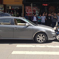 刚才刚去人民医院看病人.到了广场后面看到一辆现代车头保险缸撞掉,交警在处理,回来李家弄口临舔路交叉红绿灯,一辆残疾车又跟一辆蓝色的2箱家轿撞了...由于自己转弯快,没看清什么车型....什么风头啊....我勒个去...