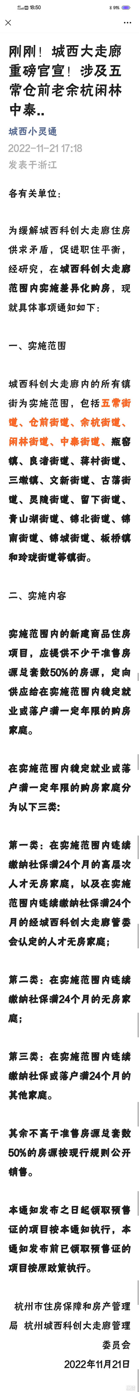 刚刚,杭州城西科创大走廊管委会对紫金港科技城、未来科技城、青山湖科技城、临安城区等地。其中临安地区包括临安城区和板桥镇,发布组合多地购房新政,利好临安、余杭、西湖三区。