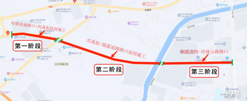 关于九州街(玲珑高速口-玲珑山路段)施工期间调整交通组织措施的通告 因道路提升改造工程九州街(玲珑高速口-玲珑山路段)施工需要,为确保道路交通安全、畅通、有序,根据《中华人民共和国道路交通安全法》第39条之规定,公安机关交通管理部门将在施工期间调整相关交通组织措施。现将有关事项通告如下: 第一阶段:2023年2月14日-2月21日(预计),九州街(玲珑高速口-兴禹街段)将实施全封闭施工; 第二阶段