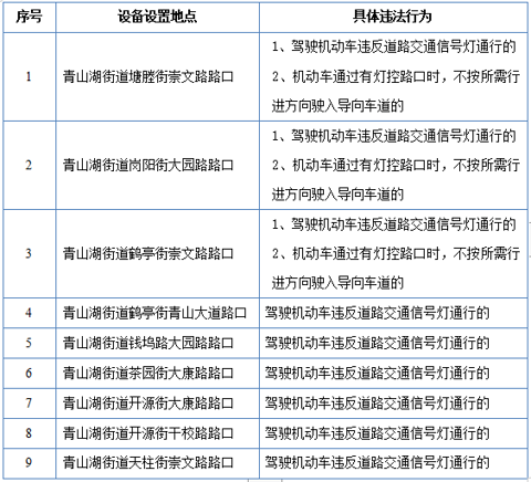 为进一步加强道路交通安全管理,我区公安机关交通管理部门新增、更新了9处固定式交通技术监控设备,将于2023年11月20日启用,对交通违法行为进行抓拍。 具体设置地点及抓拍违法行为如下 根据《道路交通安全违法行为处理程序规定》(公安部令第157号)第十六条第二款之规定,特向社会公布。 杭州市公安局临安区分局交通警察大队2023年11月14日 来源:临安公安