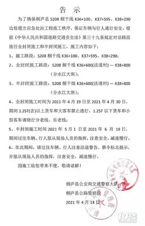 关于S208省道施工绕行通告(点击放大图片) 杭州市公安局临安区分局2020年4月16日来源:临安公安