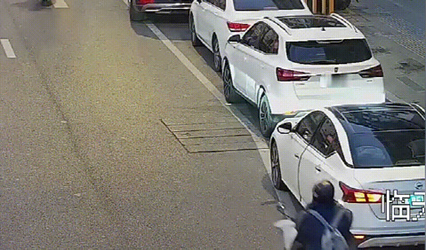 危险!临安临天路一轿车“开门杀”掀翻电动自行车!