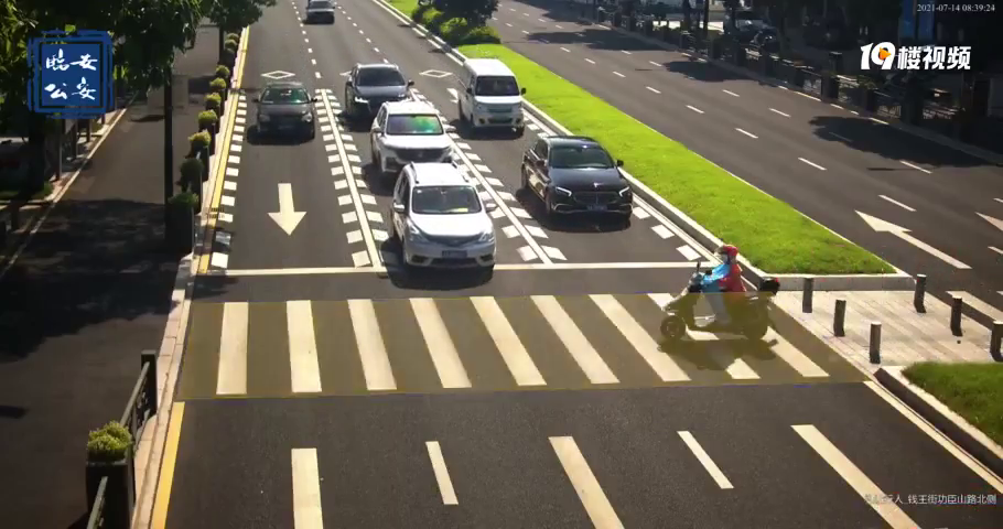 钱王街上一轿车斑马线前未让行,撞上电瓶车!