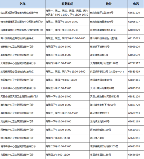收藏!全区新冠疫苗接种点和服务时间最新安排