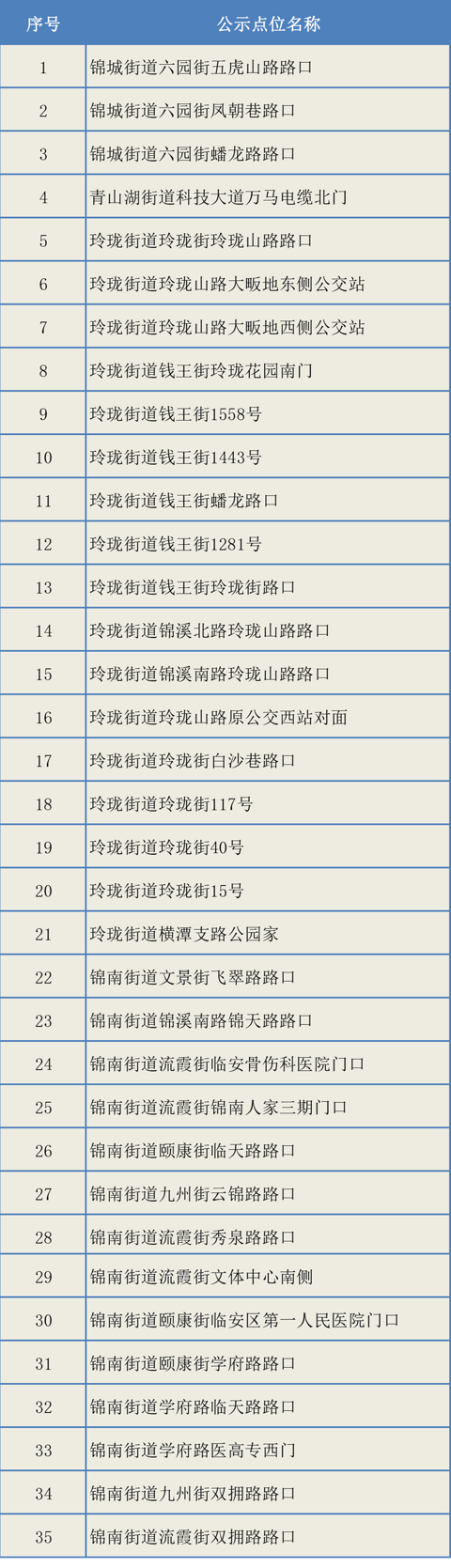 为进一步加强道路交通安全管理,我区公安机关交通管理部门新增了35处机动车违法抓拍点位,将于2023年9月17日起启用,对机动车不按规定临时停车影响其他车辆和行人通行的交通违法行为进行抓拍。 具体设置地点及抓拍违法行为如下:机动车不按规定临时停车影响其他车辆和行人通行 根据《道路交通安全违法行为处理程序规定》(公安部令第157号)第十六条第二款之规定,特向社会公布。 杭州市公安局临安区分局交通警察大