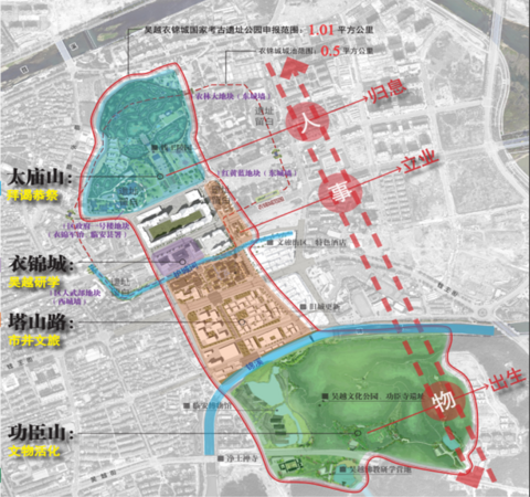 吴越国王陵考古遗址公园(衣锦城城址公园区块)项目位于锦城街道城中街与天目路交叉口东南处,是吴越国王陵考古遗址公园“城-陵-寺”结构体系中“城”片区,也是钱王故里的重要肌理和载体。目前项目建设正在积极推进中,建成后将展示衣锦古城风貌和临安城市衍进发展的历史。 ▲衣锦城城址公园区块效果图 衣锦城城址公园区块总投资金额约53348.46万元,总用地面积约21244平方米,总建筑面积约11757.4 平方