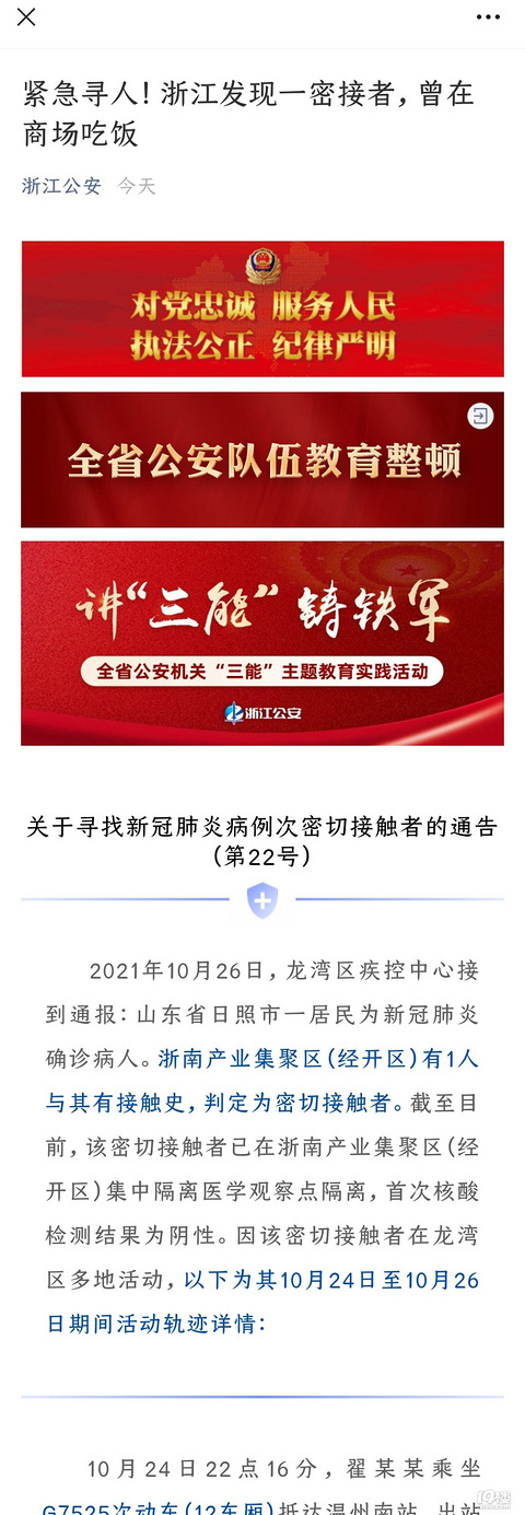 紧急寻人!浙江发现一密接者,曾在商场吃饭