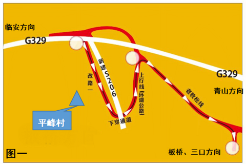 关于S206省道道路提升改造工程施工期间调整交通组织措施的通告 为确保S206(14省道)临安段改建工程一期第SG01标段下穿杭瑞高速段节点施工期间道路交通有序、安全,根据《中华人民共和国道路交通安全法》第39条之规定,公安机关交通管理部门将在施工期间调整相关交通组织措施。现将有关事项通告如下: 一、2022年9月4日起至2022年10月3日(预计),G329至平峰村路段封闭施工,届时,施工路段由