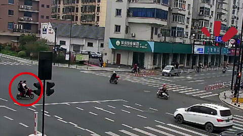 临安小伙骑车违法载人闯红灯,下一秒两人被撞飞
