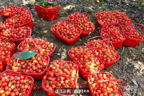 每年此时,不少人就开始惦记那份春日限定——樱桃的甜美。 近日,杭州临安区於潜镇横鑫村的高山樱桃上线了,在春风的吹拂下,樱桃林里弥漫着酸甜的清香。不过,区别于往年的樱桃结满枝头、映红山头的景象,由于天气影响,今年的横鑫樱桃结果初期受冻,导致大幅减产。 高山樱桃减产但不涨价,不过,今年樱桃采摘期将大幅缩水,预计5月前就将告罄。 四月底,临安区於潜镇横鑫村的高山樱桃迎来了收获季,红艳艳的樱桃给春日增添了