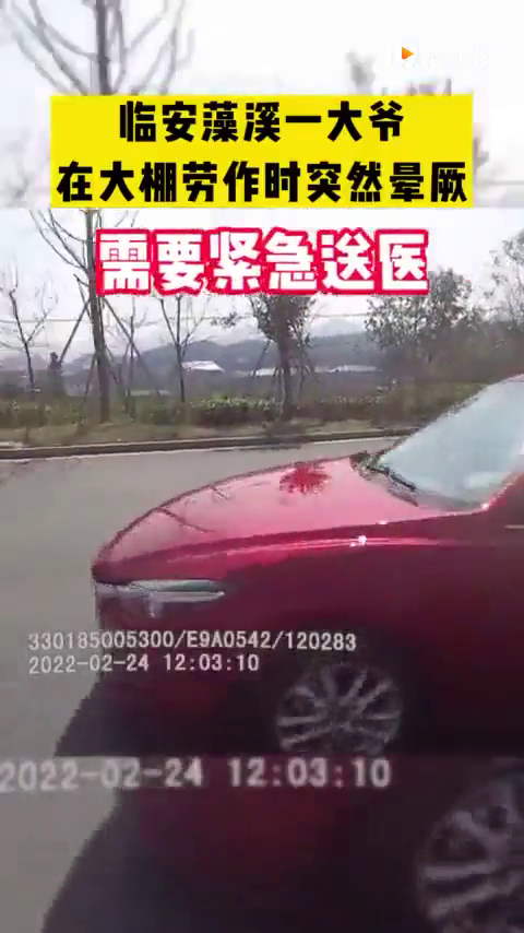 时间就是生命,尤其是对突发疾病的患者,快一秒就是降低一秒的风险。近日,临安天目山镇藻溪村一大爷在大棚劳作时突然晕厥,需要紧急送医。临安交警接到求助电话后驾驶警车开道,以最快速度护送老人就医。 00:42 2月24日11时58分许,临安交警玲珑中队接到群众求助,称邻居大爷干农活时突然昏厥,目前正载着大爷和家属从天目山镇驱车赶往临安人民医院途中,希望交警能帮忙尽快送老人就医。 情况紧急,正在路面执勤