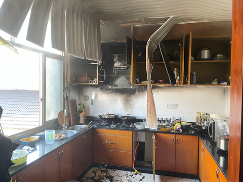 9月18日8时28分,杭州市临安区消防救援大队分指挥中心接到报警:临安区天目山镇董家村一村民家中厨房起火。分指挥中心立即调派力量赶赴现场进行处置。 据了解,户主当时在用油锅炸东西,温度过高导致油锅起火,火势极大,火苗被吸入抽油烟机中,引燃抽油烟机和橱柜。消防救援人员到达现场时,火已被户主自行扑灭。 消防人员确保无复燃迹象后,对着火点进行初步检查,确认是油锅起火导致的火灾。 临安消防温馨提醒:厨房用