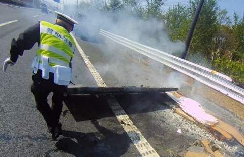 “交警同志,后面有车着火了,你们快过去看看!”4月27日上午,一辆行驶中的货车突发火情,烟雾弥漫。正在路口执勤的交警在接到过路司机求助后,一路狂奔火速赶往现场...... 当天上午9时19分许,临安交警玲珑中队辅警杨加兴、屠旭梁正在206省道-环湖路路口执勤。这时,有路过的司机向他俩求助:后方有一辆货车起火,车辆停在206省道上。接到求助的杨加兴、屠旭梁立马一路狂奔火速赶往起火地点。 206省道