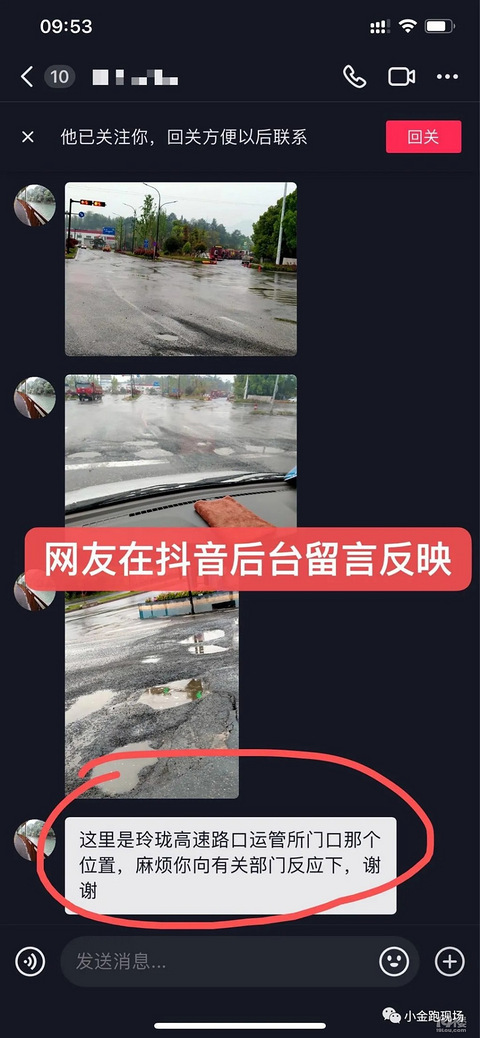 【小金跑现场】第466期:玲珑高速路口的坑洞,城投集团钱王公司已应急修复【小金跑现场】第466期“民声直通车”热心网友在抖音后台留言给金版主发来图文:G56杭瑞高速公路,玲珑高速路口有几个坑,车辆过往容易发生安全隐患,麻烦你向有关部门反映下。金版主看到后,先后联系了杭瑞高速公路公司、交通运输局等部门,最后联系到临安城投集团钱王公司,工作人员第一时间赶往现场应急处置,用沥青先填补了坑洞,待天晴后路基