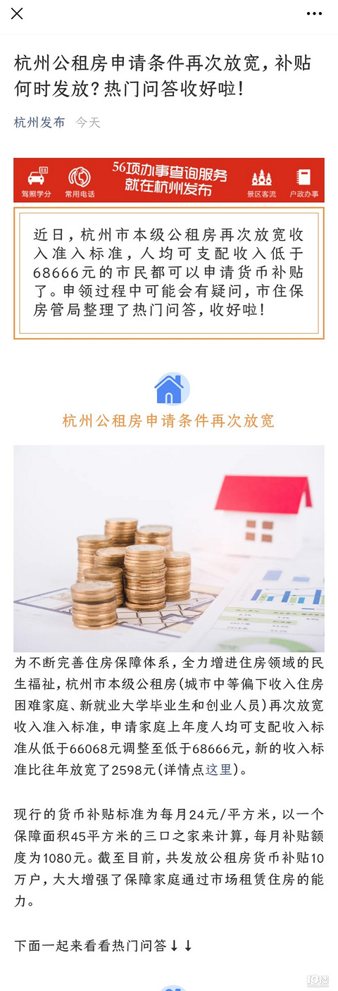 杭州公租房申请条件再次放宽,补贴何时发放?热门问答收好啦!