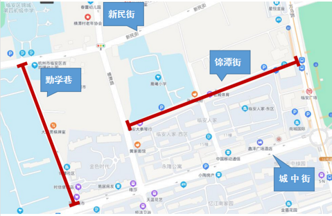 关于锦潭街、勤学巷施工期间 调整交通组织措施的通告 因锦潭街、勤学巷改造施工需要,为确保道路交通有序、安全,根据《中华人民共和国道路交通安全法》第39条之规定,公安机关交通管理部门将在施工期间调整相关交通组织措施。现将有关事项通告如下: 2022年7月7日至2022年8月31日(预计),锦潭街(横潭路至万马路段)、勤学巷(新民街至城中街)实行全封闭施工,届时,施工路段禁止一切车辆、行人通行。(点击