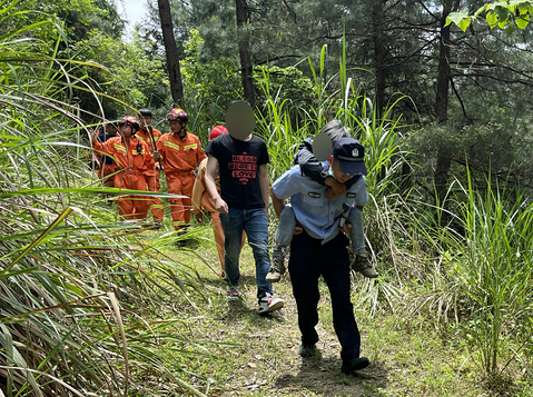 “警察同志,快救救我老伴,她的脚被捕兽夹困住了!”5月7日10时40分许,昌化派出所接到河桥镇村民卢某报警称,他和老伴王某到中鑫村一山上摘“野草莓”时,右脚被捕兽夹夹住,无法动弹,请求帮助。接到报警后,值班民警翁祁森带领辅警徐林杰立即赶赴现场,同时联动消防部门。 被困老人王某所在位置位于半山腰,山上没有路,只有一条狭小崎岖的小道,灌木丛生,民警将警车停在路边,一边用木棍开路,一边向报警人提供的位