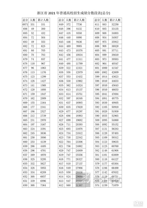 浙江省2021年高考成绩和各类别分数线已经发布,首轮志愿填报将于6月29-30日展开。今日,高考成绩一分一段表出炉,通过了解各类别成绩分布情况,考生可更清楚自己在同类考生中所处的位置。浙江省2021年普通高校招生成绩分数段表(总分)考生可登录浙江省教育考试院网站(www.zjzs.net)查看浙江省2021年单独考试招生成绩分段表。 小贴士:位次的含义和作用 考生位次,是考生高考成绩在相应招考类别