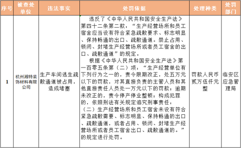 曝光|占用逃生通道?临安一公司被罚2.5W