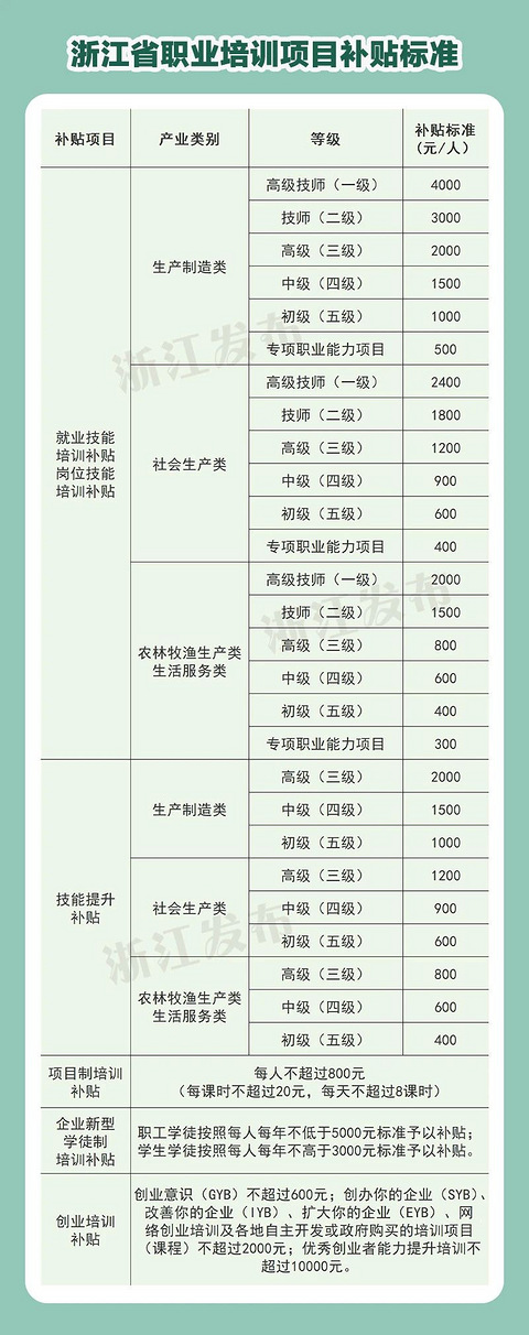 为加强和改进职业培训补贴管理,更好发挥政府职业培训补贴资金的导向作用,提升补贴性职业培训的实效,近日,浙江省人力社保厅、省财政厅印发《关于进一步加强和改进职业培训补贴管理工作的通知》,自2024年8月1日起施行。 实行培训补贴对象分渠道管理 ●通过就业补助资金发放培训补贴的 补贴对象为防止返贫监测对象、毕业年度高校毕业生(含技工院校高级工班、预备技师班、技师班和特殊教育院校职业教育类毕业生,下同)