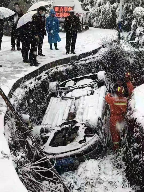 昌化有车打滑翻车了!大家出行注意安全啊!