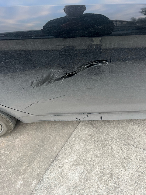 出去两天车子没有开,不知道被谁划伤了,地下车库有死角监控查不到,不知道谁在搞恶作剧