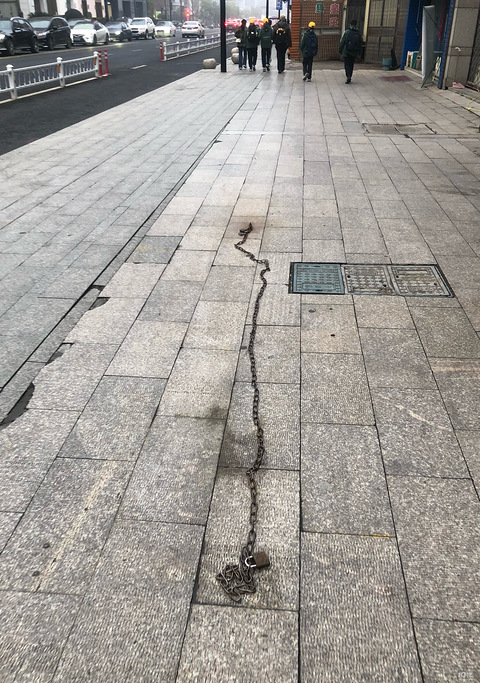 在城中街和横潭路交叉口的人行道上有一条长长的铁链子,不知道干嘛用的,难道是X X牛蛋糕店拴牛用的[/11捂脸]这里每天有许多小朋友上学必经之路!很容易绊倒。存在已经有几年了,城管难道看不到吗?还是有意而设置的。