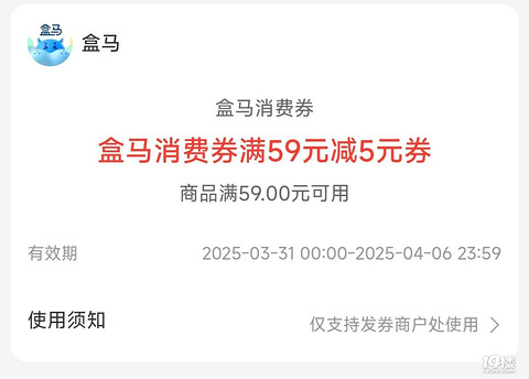 盒马付款后发的消费券再次使用提示“当前地址不能使用该优惠券”
