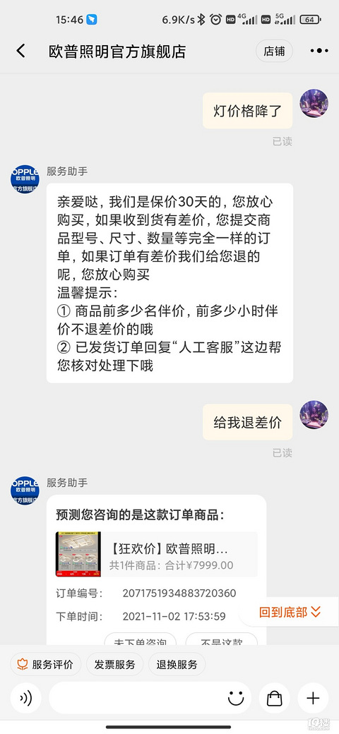 你们双十一前买的,差价退了吗