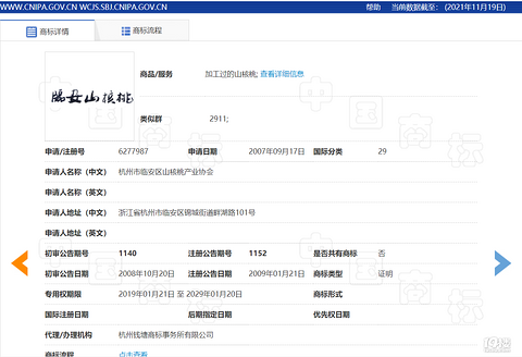 临安山核桃商标