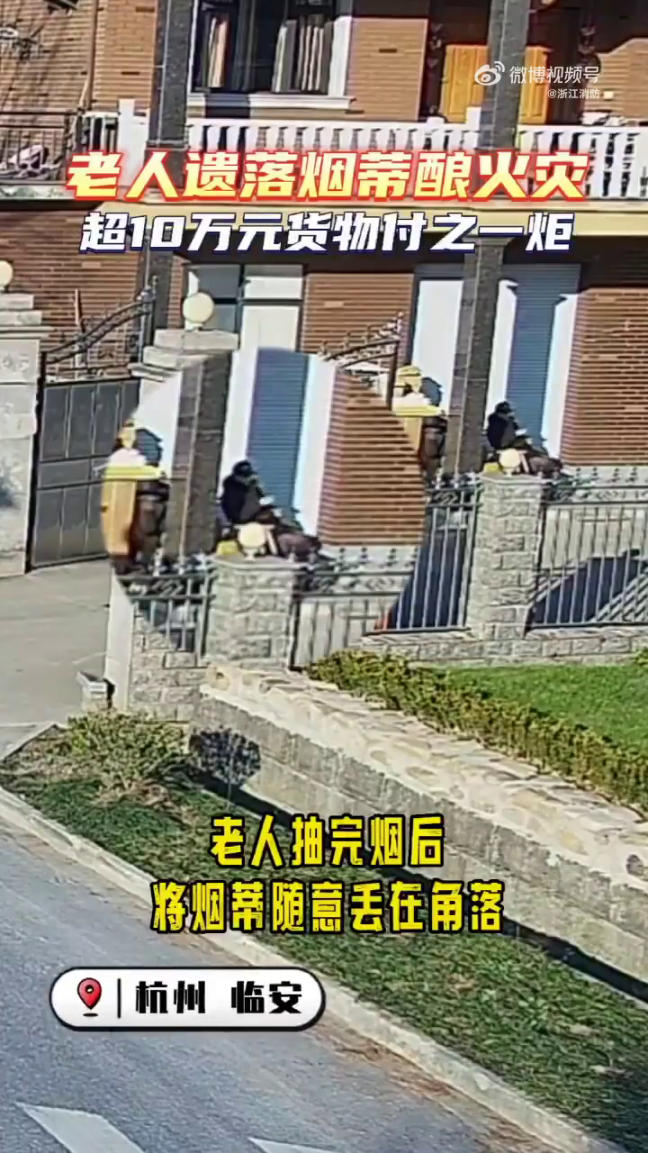 1月12日,杭州市临安区一老人吸烟时将烟蒂随意乱丢在角落引发火灾将杂货点燃烧毁超10万元的货物。春节将至一定要注意不要乱丢烟蒂阿!