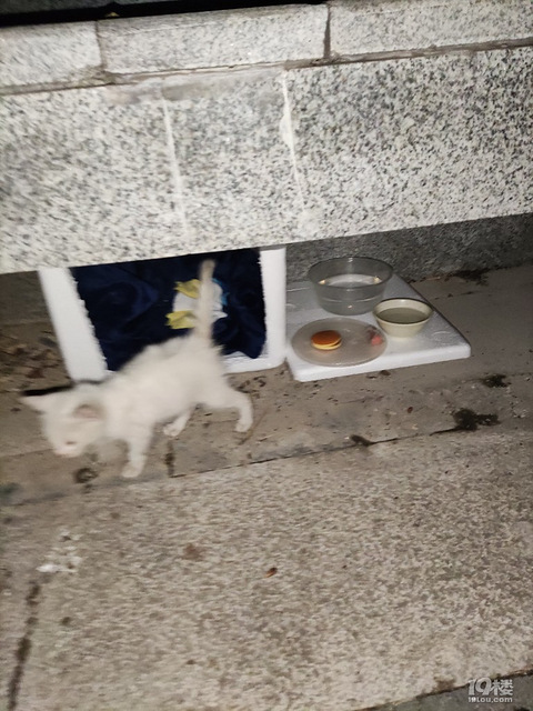 昨天晚上跑步,看到一只小白猫,当时非常饿,我买了香肠,和水,我也不懂能不能吃,后来怕后半夜下雨会冷,我给它搭了一个简易的窝,我没有能力养,如果有人要养,可以去苕溪北街有个亭子的对面的小广场(苕溪北街和万马路交叉口的新楼盘),新楼盘不知道什么房子,在石凳下。我刚才又买了两根鱼肠,昨天买的已经吃完了,小猫饿得很,不知道原来的主人为什么要把他扔在那里,它自己想找吃的也没有地方去找[ej=1F62A]