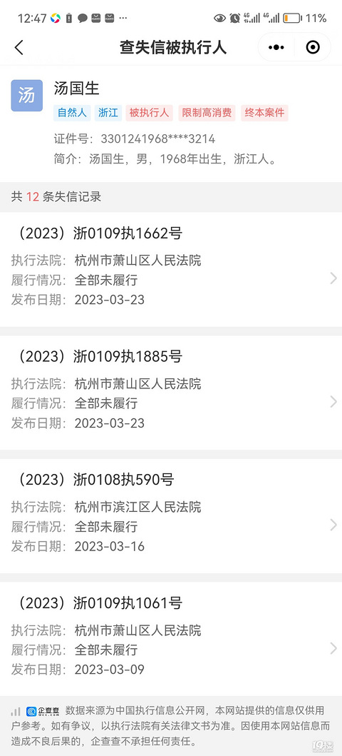 潜川镇牧亭村的,表面是个老板,看着人也还行。瞒着我外面欠了一屁股债,借钱开始陆续官司12个,涉案金额500多万。把我坑死了,当他朋友,这样搞我。现在我去起诉还有意义么,赢了也拿不到钱