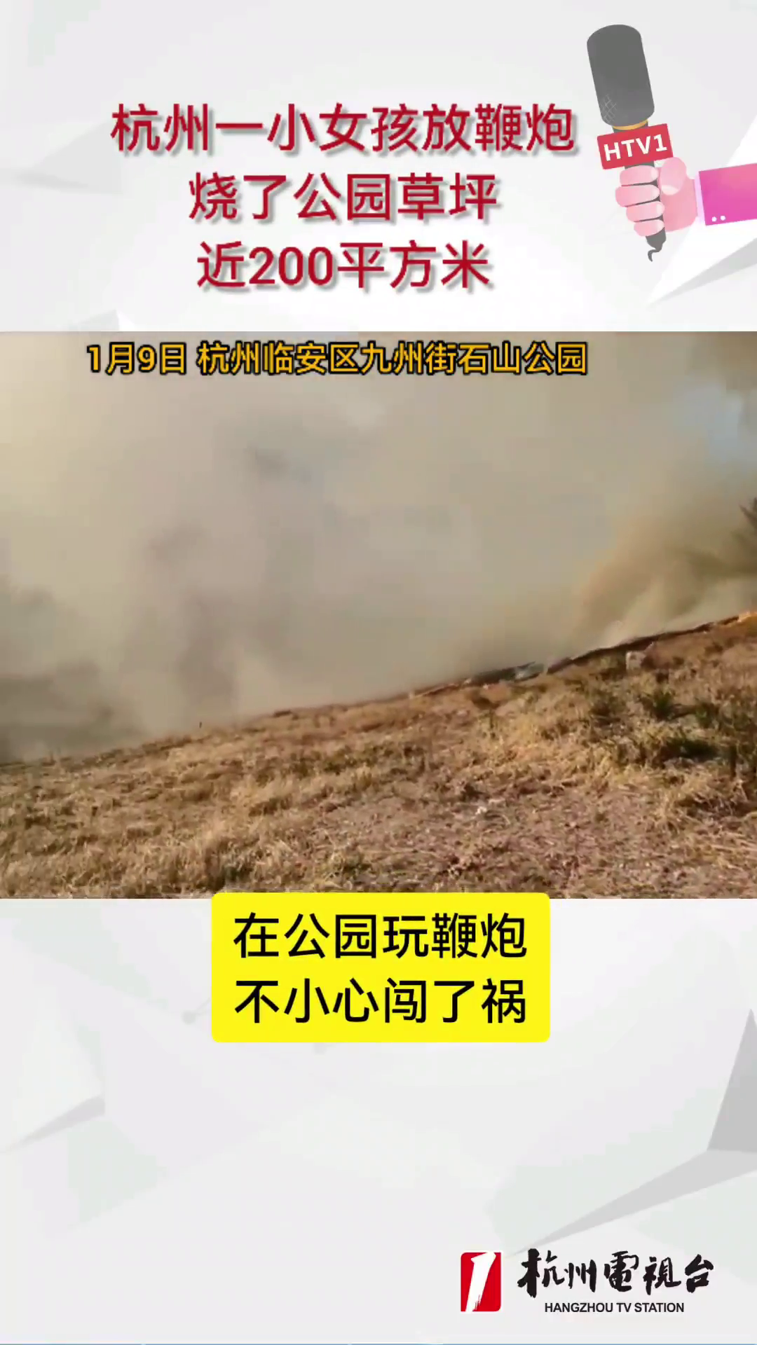 临安一小女孩玩鞭炮烧了公园200平草坪