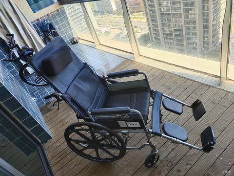 家中孩子腿受伤,出门换药用了两次,出小区门到社区医院,大概100米。原价330+,现180转给有需要的人,玉兰花园一期自提。功能:1.靠背角度可调节,最大可放平,加高靠背可拆卸;2.撑脚高度和长度都可调节,最大为垂直或者放平;3.高强度实心橡胶胎,免去充气的烦恼;4.轮椅可折叠。