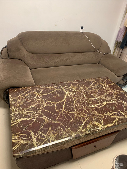 真皮沙发,大理石茶几,三件套500出,自取!买来的时候4000多,沙发外面是布,里面是真皮,质量很好