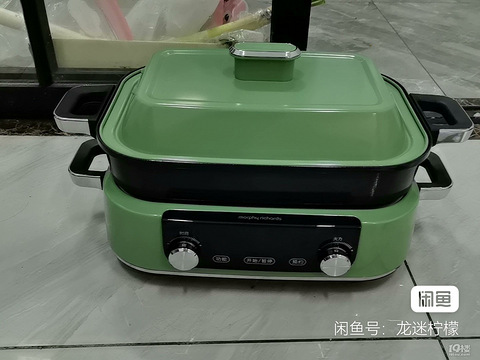 全新电锅,一次没用过,年会得的,绿色,可煮火锅,可烤肉,可煎炸,有蒸屉。600元